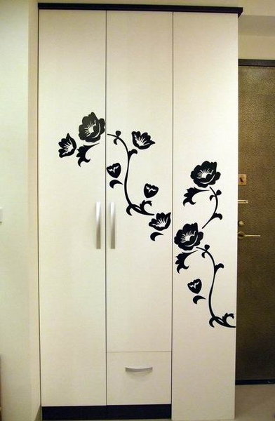 一個月前去 Ikea 買了壁貼,想要貼在1/2 玄關櫃(衣帽櫃) 的白色門片上